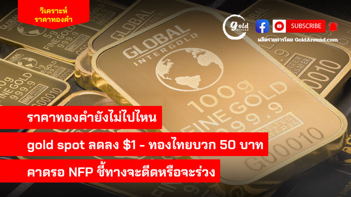 ราคาทองคำยังไม่ไปไหน gold spot ลดลง $1 – ราคาทองไทยบวก 50 บาท คาดรอ NFP ชี้ทางจะดีดหรือจะร่วง..