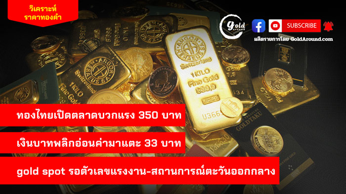 ทองไทยเปิดตลาดบวกแรง 350 บาท เงินบาทพลิกอ่อนค่ามาแตะ 33 บาท gold spot รอตัวเลขแรงงาน-สถานการณ์ ตอ.กลาง