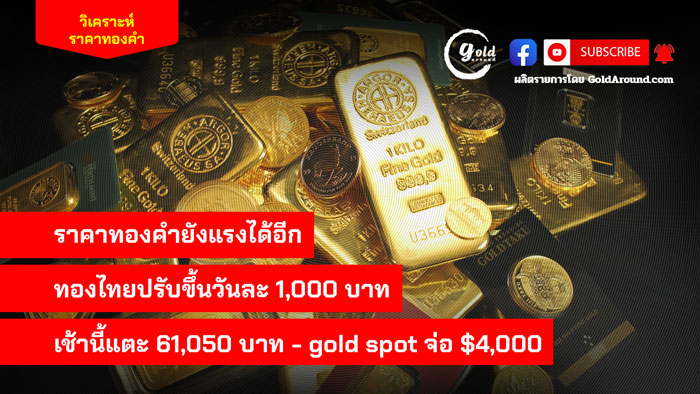 ราคาทองคำยังแรงได้อีก ทองไทยปรับขึ้นวันละ 1,000 บาท เช้านี้แตะ 61,050 บาท – gold spot จ่อ $4,000