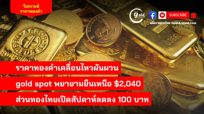 ราคาทองคำเคลื่อนไหวผันผวน gold spot พยายามยืนเหนือระดับ 2,040 ดอลล่าร์ ส่วนทองคำไทยเปิดสัปดาห์ ลดลง 100 บาท