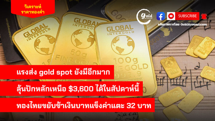 แรงส่ง gold spot ยังมีอีกมาก ลุ้นปักหลักเหนือ $3,600 ได้ในสัปดาห์นี้ ทองไทยขยับช้าเงินบาทแข็งค่าแตะ 32 บาท