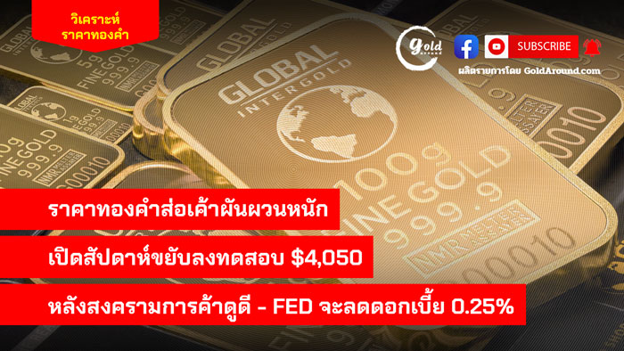 ราคาทองคำส่อเค้าผันผวนหนัก เปิดสัปดาห์ขยับลงทดสอบ $4,050 หลังสงครามการค้าดูดี-FED จะลดดบ.0.25%