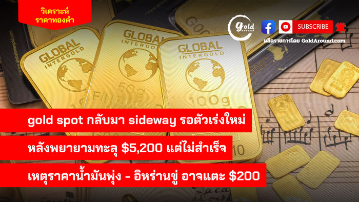 gold spot กลับมา sideway รอตัวเร่งใหม่ หลังพยายามทะลุ $5,200 แต่ไม่สำเร็จ เหตราคาน้ำมันพุ่ง-อิหร่านขู่อาจแตะ $200