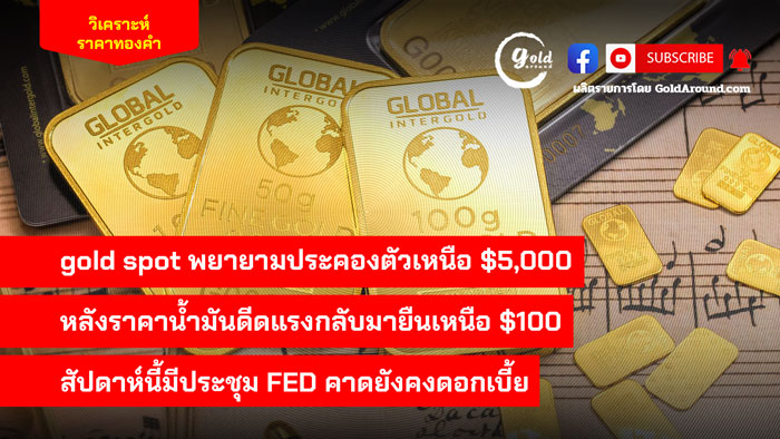 gold spot พยายามประคองตัวเหนือ $5,000 หลังราคาน้ำมันดีดแรงกลับมายืนเหนือ $100 สัปดาห์นี้มีประชุม FED คาดยังคงดอกเบี้ย