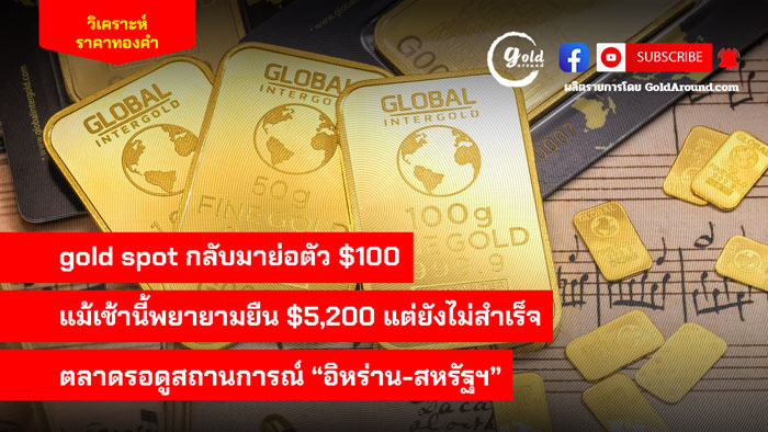 gold spot กลับมาย่อตัว $100 แม้เช้านี้พยายามยืน $5,200 แต่ยังไม่สำเร็จ ตลาดรอดูสถานการณ์ “อิหร่าน-สหรัฐ”