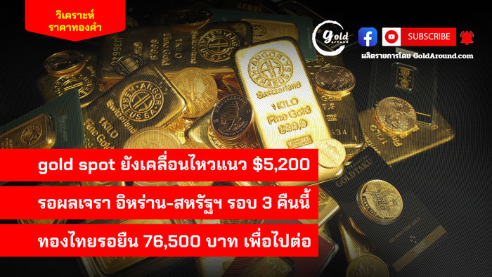 gold spot ยังเคลื่อนไหวแนว $5,200 รอผลเจรา อิหร่าน- สหรัฐ รอบ 3 คืนนี้ ทองไทยรอยืน 76,500 บาท เพื่อไปต่อ