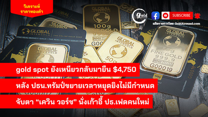 gold spot ยังเหนียวกลับมายืน $4,750 หลัง ปธน.ทรัมป์ขยายเวลาหยุดยิงไม่มีกำหนด จับตา “เควิน วอร์ช” นั่งเก้าอี้ ปธ.เฟดคนใหม่