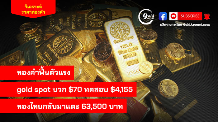 ทองคำฟื้นตัวแรง gold spot บวก $70 ทดสอบ $4,155 ทองไทยกลับมาแตะ 63,500 บาท