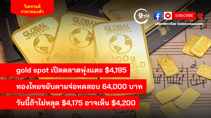 gold spot เปิดตลาดพุ่งแตะ $4,195 ทองไทยขยับตามจ่อทดสอบ 64,000 บาท วันนี้ถ้าไม่หลุด $4,175 อาจเห็น $4,200