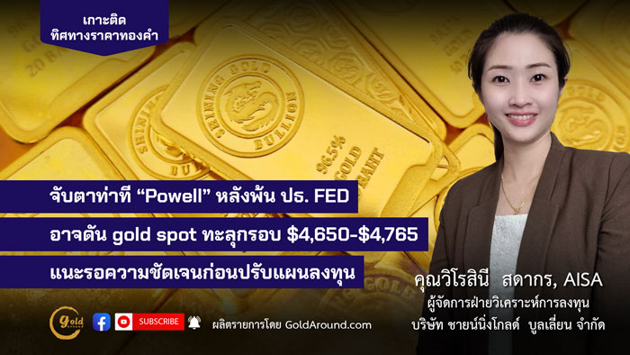 จับตาท่าที “Powell” หลังพ้น ปธ. FED อาจดัน gold spot ทะลุกรอบ $4,650-4,765 แนะรอความชัดเจนก่อนปรับแผนลงทุน